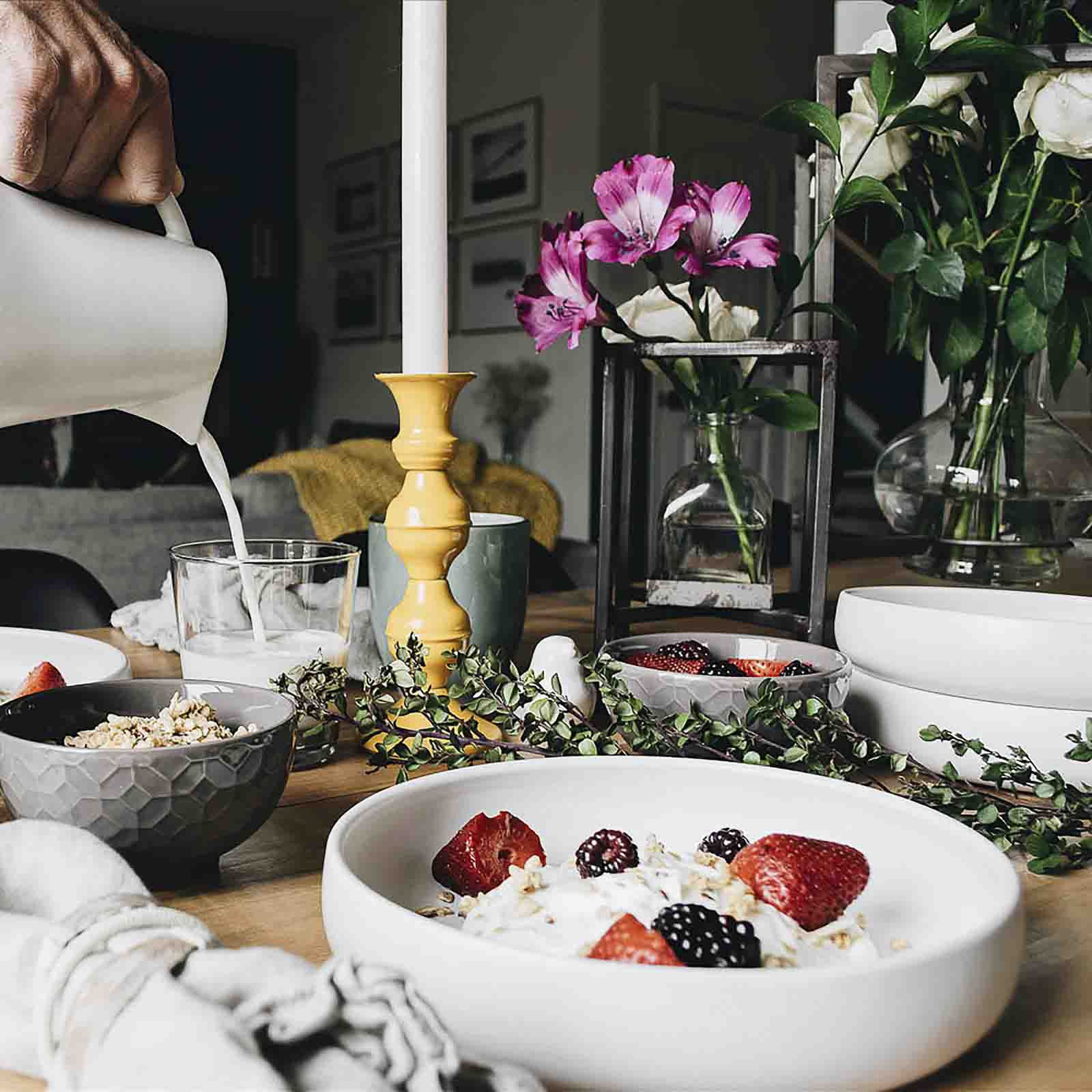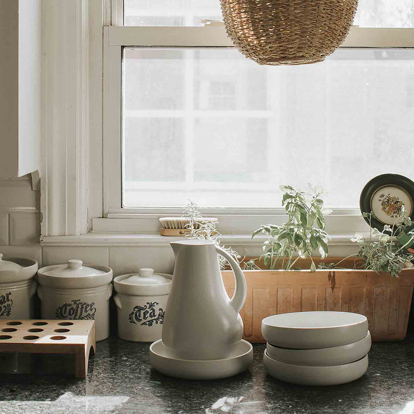 The perfect combo for a Saturday brunch with friends or late Sunday breakfast with family. Four salad plates for your waffles, pancakes, or fresh fruit yogurt bowl. And a pitcher for that green juice or mimosa! Our Brunch Set includes:
